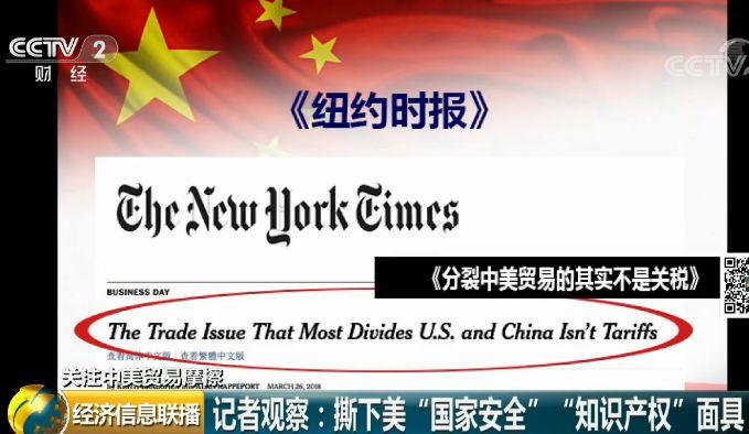发布时间:2018-04-02 08:59:24,阅读次数:303 - 一组数据撕下美国冠冕堂皇面具 揭开对华贸易战真相 美国特朗普政府在宣布对华贸易加征关税时称,是为了保护国家安全和解决知识产权问题。听上去理由“正当”,然而事实是否如此?央视北美记者王冠的观察↓撕下美国“国家安全”“知识产权”面具。 美国特朗普政府在宣布对华贸易加征关税时称,“这是为了保护美国国家安全和解决知识产权问题”。 这次特朗普政府的对华贸易战主要有两轮攻势,可以简单的归纳为232和301。
