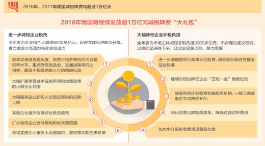 来源:2018年《政府工作报告》、国家统计局 改革完善增值税,提高个税起征点,减税降费逾1.1万亿元 并、减、降,解码税改关键词(经济热点·打开改革大礼包①) 今年《政府工作报告》中提及“改革”一词多达97次,囊括一系列经济领域改革新举措。《经济周刊》从本期起,推出系列报道“打开改革大礼包”,从税制、土地、证照三个话题入手,为您解析今年全面深化改革有哪些亮点、又将释放怎样的红利。 ——编 者 改革完善增值税制度,提高个人所得税起征点……今年《政府工作报告》中,税制改革的内容被多次提及。 税制改革涉及百姓、企业和政府的钱袋子,一举一动都牵动着人们的神经。今年的税制改革将会怎样“放大招”?全国两会之后,本报记者对此进行了调查。 第一大税种将变啥样? 税制更简单,税负更公平,有助于缓解高征低扣、低征高扣等现象 在山东淄博翔川运输有限公司,进出的运输车辆络绎不绝。公司负责人孙栋告诉记者,税收对运输业成本影响显著,近年来,得益于营改增和一系列减税降负政策,企业可以拿出更多的资金添购车辆,近3年每年增加运输车20多辆,规模由原来的70多辆扩大到140多辆。 “得知《政府工作报告》提出重点为交通运输业减负,我们制定了新的发展规划,将今年原本打算增加的18辆运输车增加到30辆。”孙栋说。 《政府工作报告》提出,今年要改革完善增值税制度,按照三档并两档方向调整税率水平,重点降低制造业、交通运输等行业税率,提高小规模纳税人年销售额标准。这些改革举措,给制造业和交通运输业等实体经济带来了新期待。 东岳化工有限公司财务经理王娜拿着财务报表向记者介绍,今年1—3月,公司销售收入65043万元,销售产品要按照17%的税率缴税,但公司成本中,有大量的运费和服务业类项目,却只能按照11%和6%的税率抵扣税款,存在明显的“高征低扣”现象,导致公司整体税负达到 4.6%。“如果税率简并,可大大降低企业税负,有利于企业转型升级。” “简并增值税税率,能降低税收复杂性,平衡行业间的税负差异,有助于缓解目前不同行业间存在的高征低扣、低征高扣等现象。”中国财政科学研究院副院长白景明说,在去年已将增值税四档税率减为三档,今年继续降为两档,将使增值税制度更加合理,并给企业高质量发展提供资金支持。 在明确了增值税改革方向后,企业最关心的,就是如何进行税率简并?又将带来多大力度减负? “目前有两点是可以确定的,一是改革将主要在17%和11%两档税率上做文章,二是肯定要做减法,但具体下调力度还要取决于财政承受能力和行业的具体状况。”上海财经大学教授胡怡建说,增值税改革将是一个长期过程,但在今年总体8000亿元的减税规模里,增值税改革将是占比最大的减税举措。 在我国,增值税是名副其实的第一大税种。根据财政部公布的2017年财政收支情况,去年仅国内增值税收入就达到56378亿元,在总体税收收入中占比近40%。 白景明说,在我国税收结构中,增值税占比最高,而在增值税整体收入结构中,17%税率所占比重也是最高的,这两个最高的实际状况,决定了降低17%这档增值税率将是一个循序渐进的过程。 3月28日,国务院常务会议确定了深化增值税改革的三项措施,决定将制造业等行业增值税税率从17%降至16%,将交通运输、建筑、基础电信服务等行业及农产品等货物的增值税税率从11%降至10%,预计三项措施全年将减轻市场主体税负超过4000亿元。 不少企业还担心,由于增值税具有环环抵扣、增值征税的特点,上游企业缴纳的增值税将为下游企业带来相应税款抵扣,一旦制造业等上游企业的税率降低、税负减少,下游企业的可抵扣额就会减少,是否会出现税负增加的状况? “这种担忧是正常的,但国家在制定相关税收政策时,也会充分考虑增值税的抵扣因素,并采取措施保证减负举措落到实处。”胡怡建表示,去年在增值税四档变三档的改革中,就同步配套了保持农产品抵扣力度不变的税收政策,从而在减轻农产品初加工企业税负的同时,保证农产品深加工企业的负担不增加。 增值税改革带来的税负降低也将惠及最终消费者。瑞华会计师事务所管理合伙人张连起表示,对制造业和交通运输业的减税措施,最终会传导到下游一些产业,甚至传导到老百姓的日常消费,促进消费升级和扩大内需。 个税起征点该提多高? 重在平衡不同家庭间的实际负担差异,不能唯收入论 在企业签收减税大礼包的同时,百姓也收到了好消息,社交媒体迅速被“个税起征点提高了!”等信息刷屏。 有着17年工作经历的湖北宜昌人福药业麻醉生产车间王主任,谈起个税改革很兴奋。“我现在月薪接近9000元,每个月要缴纳230元左右的个人所得税,如果起征点能提高到7000元,扣除各项社会保险费后,我的工资水平可能达不到起征标准,那么每年就可以增加收入近3000元。”王先生说。 我国自1994年实施个人所得税法至今已24年,其间对工薪所得费用扣除标准有过三次大的改革调整,分别是2005年由800元提高至1600元;2008年由1600元提高至2000元;2011年由2000元提高至3500元。 “从我国个税改革历史轨迹来看,提高基本费用扣除是主要方式。”胡怡建表示,根据经济社会发展情况适当提高个税起征点,是这项税制改革的内在要求,要更好平衡不同群体收入差距,还需在其它方面推进个税改革,让不同个人、家庭间的实际负担更加