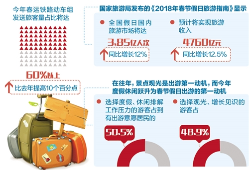 俗话说,有钱没钱回家过年。春节是中国人一年当中最重要的传统节日。每年春节,人们不管在哪里,都会放下手中事情,赶在除夕前回到家中和亲人们一起话家常、吃团圆饭。 不过,欢声笑语中,也有不少读者表示,现在的年味越来越淡、过年没意思……真的是年味淡了吗?其实不然。传统过年的内容和形式,与当时人们的生活方式和生活习惯相适应,但随着习惯的改变,这一切自然也会变。 如今,随着时代发展和科技发达,从回家的方式,到网购年货、年夜饭外卖,再到旅游过年,其实很多潜移默化的变化正在改变着我们的过年方式。 行:春运回家方式多了 每年冬天,特别是进入腊月,茶前饭后,“过年回家吗?”“什么时候回家?”“怎么回家?”这样的问候都会回响在人们的耳边,直到春节到来那一天。 “今年春运,我早早就拿到返乡高铁车票了。”谈及春运回家经历,常年在北京务工的刘亚平告诉记者,她老家在湖北咸宁,以前回去都要坐十几个小时大巴车,现在高铁只要6小时就能直达家门口,又舒服又方便。 近年来,全国春运旅客发送量逐年上升,其中铁路发送旅客量更是保持着连年持续增长态势。高铁的高速度、快节奏,也使得铁路的运力运能每年都上一个新台阶。记者了解到,今年春运动车组发送旅客量占比将达60%以上,比去年提高10个百分点。 面对人来人往的客流,高铁所展示的“主角”风采是多方面的。忆往昔,夹着铺盖卷彻夜排队买火车票的壮观景象逐渐消失了,画面定格成为几代人的回忆;看今朝,高速铁路网更密集了,车次更多了,速度更快了,票更好买了,座位也愈加舒适了,回家的路也更顺畅更从容了。 随着共享经济发展,互联网拼车回家也成为春运一大趋势。对于在天津读大三的高林强来说,选择拼车回家可省去不少“折腾”。“我老家在山东潍坊下面一个县城的村里,每年过节回家,先坐长途火车,到车站后再坐两个小时公交车到县城,从县城再坐出租车或者摩托车才能到家。” 事实上,这样“最后一公里”的现象在春运中显得尤为突出。据网约车平台滴滴披露的数据显示,2018年春运期间预计使用顺风车的人数将达到3300万人,预计数据已经达到前两年总和的3倍。 游:带着家人出门过大年 随着春运大幕全面拉开,旅游市场也迎来了新一轮出行高峰。国家旅游局发布的《2018年春节假日旅游指南》显示,全国假日国内旅游市场将达3.85亿人次,预计将实现旅游收入4760亿元,分别同比增长12%和12.5%。中国旅行社协会对外发布的《2018春节黄金周旅游趋势报告》也显示,2018年春节期间,在旅游消费持续升温的情况下,春节全家出游成为越来越多人的选择。 “今年是我第一次带着爸妈出国过年,我决定趁着爸妈身体都好,以后每年过年都带他们出门看看世界。”正在瑞士苏黎世湖畔,陪伴爸妈散步的北京白领孟怡说,往年春节都是回老家吃吃喝喝,真是“每逢佳节胖3斤”,而且自己平时工作忙,没时间陪父母,更别说带父母出去旅游。“这次正好利用春节长假带他们一起出国旅游,感受不一样的春节。” 尽管春节假期旅游线路价格出现了不同程度的上涨,部分产品价格涨幅甚至翻番,但这并未能阻挡消费者旅游过年的热情。“有的游客甚至提前6个月就预订了春节出游产品。”驴妈妈国内跟团游负责人吴雪峰介绍说,2017年9月初就有游客开始咨询预订2018年寒假游学产品。特别是位于南半球的澳大利亚、新西兰等地正值夏天,是寒假期间家长带孩子出国游学的热门选择。 国家旅游局相关负责人表示,往年景点观光是出游第一动机,今年度假休闲跃升为春节假日出游的第一动机。选择度假、休闲排解工作压力的游客占到有出游意愿居民的50.5%,选择观光、增长见识的游客占48.9%,温泉游、养生游等康养休闲游最受游客关注。 从出游方式看,自由行已经成为居民春节出游最主要的方式,家庭自助游的比例高达52.7%。在交通工具上,选择自驾车出游的比例达到44.7%,高铁游、火车游占18.8%。可以说,旅游已成为公众欢度春节的重要方式。 吃:年货年夜饭“一键”解决 伴随互联网的迅猛发展,让广大食客们不仅能买到来自世界各地的美食,还可以随时随地拿出手机“一键”约定送货上门。 在江苏南京上班的刘烨告诉记者,他今年春节回江西老家的随身行李只有一个双肩包。“给父母和家里长辈的年货早在腊月二十就快递到家了,相比以前大包小包的年货行李,现在回家过年真的轻松很多。” 互联网改变了人们“买买买”的方式,吃年夜饭的形式也有了翻天覆地的变化。“今年的年夜饭,我们在家叫的美团外卖。”家住长沙的刘敏告诉记者,年前想在家附近的饭店预订年夜饭,发现餐厅的包厢都被订完了,后来一打听,餐厅在除夕当天可以提供外卖服务,可算解了一大家子的燃眉之急。 随着“互联网+餐饮”的发展,如今外卖已经成为人们日常用餐方式的“第三种常态”,而且春节期间用户依然有旺盛的网络订餐需求。对此,美团外卖业务负责人表示,为了保障春节期间外卖订餐平台的正常运营,美团外卖在春节前一个月就开始调研商户在春节期间的营业情况,预估春节期间全国将有数十万餐饮商家保持正常营业,包括海底捞、望湘园、呷哺呷哺等全国连锁餐饮品牌,消费者在节日期间依旧可以在喜爱的餐厅订外卖。 创新年夜饭供应方式,由等客上门就餐到提供年夜饭外卖,是餐饮企业