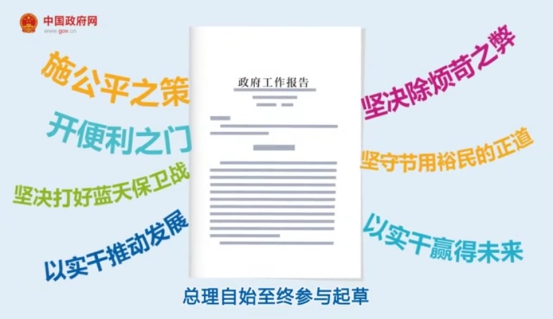 总理还要主持召开各界人士参加的座谈会,有话当面说。作为普通网民,你的意见也有机会被采纳。登录中国政府网,就可以“我向总理说句话”,对政府工作建言啦。李克强总理说,让更多的“金点子”变成政府解决难题、改进工作的“金钥匙”!改动天天有,大改几十稿,一直改到大会开幕前,春节也不休息。总理自始至终参与起草,还会亲自修改哟!