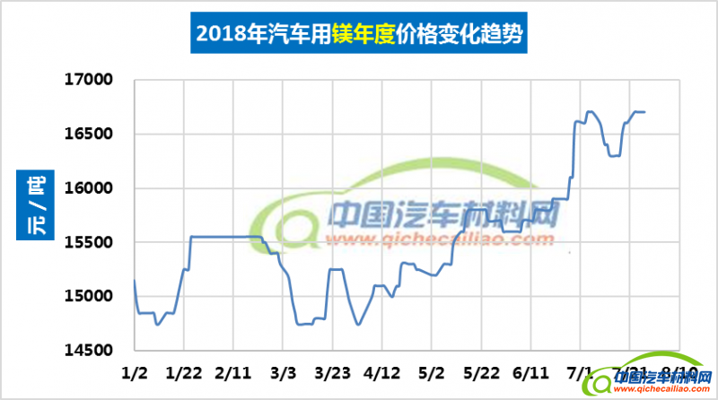 汽车用镁年度价格趋势:2018.01.02-2018.07.27
