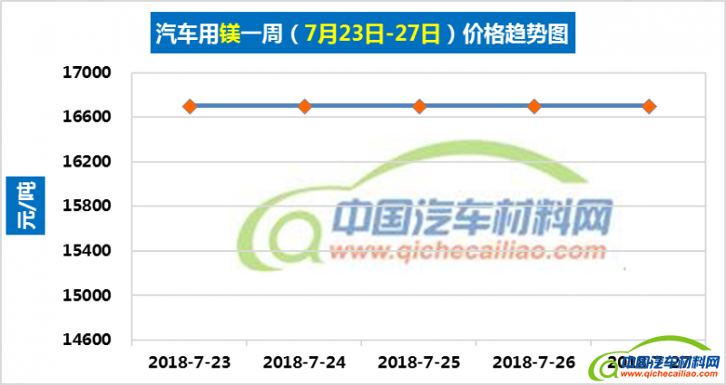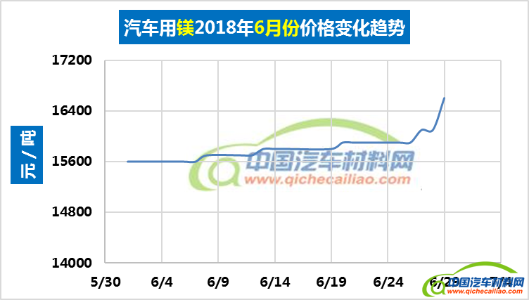 汽车用镁本周价格较为稳定,维持在16700元/吨,较上周上涨1.46%,较6月份均价上涨5.50%。