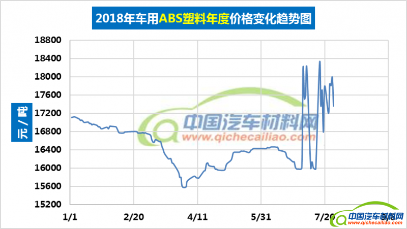 汽车用ABS塑料年度价格趋势:2018.01.02-2018.07.27