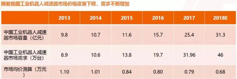 预计2018年中国工业机器人减速器需求将超过40万台,市场容量将超过30亿元