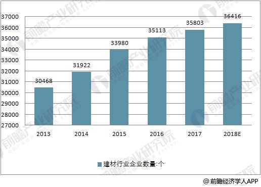 发布时间:2018-08-29 10:01:39,阅读次数:801 - 随着我国工业化和城市化的不断发展推进,对于建材的需求日益剧增。再加上近年来,房地产行业的高速发展,更是进一步拉动了建筑材料的需求增长。正是在国内经济环境高速发展的刺激下,建材行业顺势而起,并经过近些年来的不断创新和发展,以及国家政策的扶持,建材行业逐渐朝着稳步的方向迈进。据前瞻产业研究院发布的《中国家居建材行业市场前瞻与投资战略规划分析报告》数据显示,截止2017年底,我国建材行业规模以上企业达到35803家,比上年增加690家。2018年上半年建材行业企业34554个。预计2018年建筑行业企业数量将进一步增长,达到36415个。2013-2018年中国建材行业企业数量走势