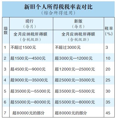 “起征点”由每月3500元提高到5000元