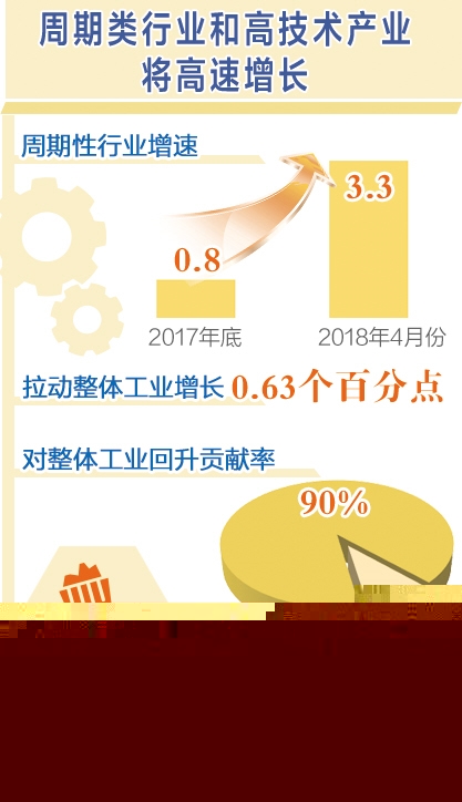 5月份宏观经济数据公布之后,部分数据引发社会广泛关注。加之,中美贸易摩擦预期上升,市场上出现了一定的悲观情绪。我们认为,虽然面临结构性去杠杆和中美贸易摩擦等双重挑战,但下半年宏观经济仍将保持平稳运行的大势不变。 工业仍将平稳高速增长 下半年,周期类行业和高技术产业仍将高速增长。从分行业工业生产数据来看,受大宗商品价格持续上行影响,周期性行业的增速由上年底的0.8%左右回升至4月份的3.3%左右,回升幅度达4.1个百分点,拉动整体工业增长0.63个百分点,对整体工业回升的贡献率达到90%。预计下半年,大宗商品价格仍将保持波动上行态势,周期性行业将继续保持高速增长。在转型升级和大量研发投入的支撑下,高技术产业也将保持平稳高速增长。 此外,基建投资回稳为工业增长提供需求支撑。下半年,随着地方债发行速度加快,基建投资面临的资金约束将得到一定程度缓解,基建投资大幅快速下滑的态势将得到扭转,这将为工业增长带来需求动力。 5月1日,制造业、交通运输、建筑等行业及农产品等货物的增值税调降正式实施,政策红利有望成为增长的新动力。但是,由于中美贸易摩擦影响,设备制造业增长面临考验。从美国公布的第一批征税商品来看,主要集中在汽车及其配件、电子电路、工业设备机械零件以及其他类似商品。受此影响,机械设备制造业下半年的增长压力陡然增加。 服务业增长有潜力 5月份,服务业商务活动指数为54.0%,比上月提高0.2个百分点,高于上年同期0.5个百分点;服务业新订单指数达到50.4%,较上月提高0.1个百分点,表明市场需求保持扩张态势。航空运输、邮政快递、电信、互联网软件等行业商务活动指数持续位于60.0%以上的高位景气区间;零售、住宿等传统行业商务活动指数均高于服务业总体水平。 下半年,主要行业将继续保持高速增长。5月份,信息传输、软件和信息技术服务业持续高速增长,增速高达30%以上,且呈不断提高态势,是服务业快速发展的最主要动力;租赁和商务服务业保持两位数较快增长,增速比上年同期提高2.5个百分点;交通运输、仓储和邮政业,金融业,房地产业增速较上月加快。