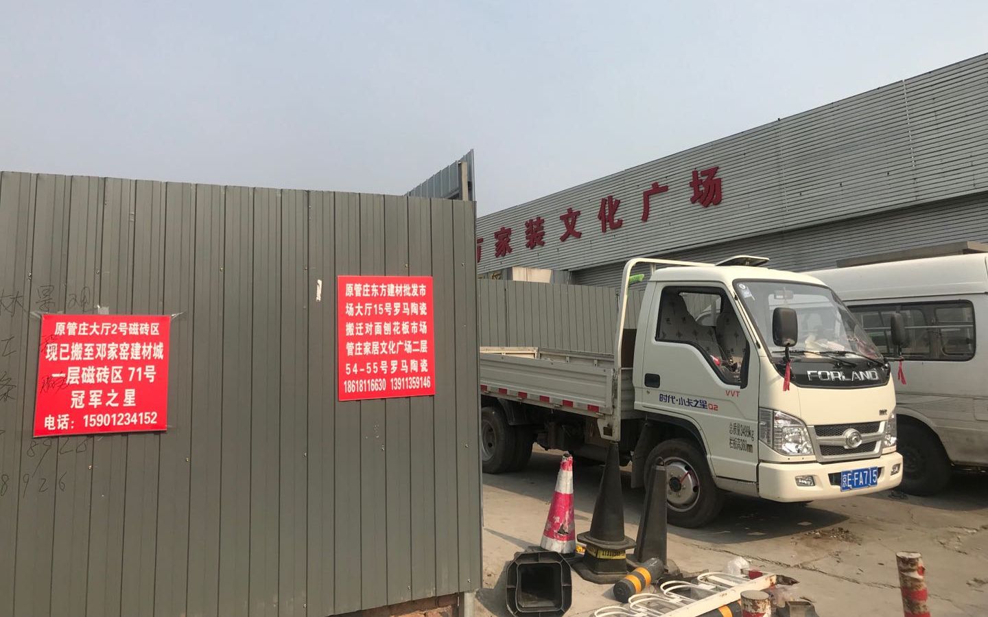 搬离的商户在门口贴上了搬迁后的新地址。新京报记者 陈琳 摄据介绍,东方建材批发市场关停后,规模稍大的商户纷纷寻找新商铺,有的搬到邓家窑建材市场,还有的去了十里河、王四营。“规模小的商户就直接甩卖,不干了。”上述商户介绍,管庄地处东五环外,地租较低,同时又毗邻交通干线,运输极为便利。十几年前他刚来管庄时,这一片全是卖建材的,东方建材批发市场东面原先也是一个建材超市,后来超市关门,开起了进口商品直销中心。再往东的杨闸环岛东南角,曾是瓷砖一条街,目前已全部拆除,变成了绿地。清退后全部拆除,恢复预留地功能对于市场的清退,其实不少商户早有准备。随着城市的快速发展,尤其是北京城市副中心的建设,管庄已经从位置偏僻的东郊,变为通往副中心的廊道地区,产业疏解、环境升级势在必行。建材批发市场给附近市民带来了方便,但交通拥堵也是一大问题。2016年2月的一个晚上,市场3号厅还发生了火灾,商户存储的木板、保温材料、油漆桶着火,48辆消防车到场处置,所幸最终未造成人员伤亡。