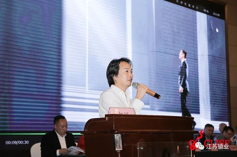 接下来是此次大会总冠名企业——浙江威欧希科技有限公司总监为大会致辞。他说锁匠作为最接近消费者的一线人员,是最直接、最全面、最深入了解用户使用中的需求和心得,他希望企业和与锁匠应建立良性互动,从而为用户提供更好的服务,推动行业向前发展。