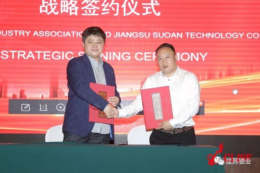 发布时间:2019-05-21 15:50:11,阅读次数:2098 江苏省锁业协会会长李小辉致辞,他说,协会已经走过了3年,取得的成绩和成就都离不开在座各位大力的支持和帮助。今后我们的工作还是需要各位同仁的支持,在被动中寻求主动、在被动中争取主动,在被动中创造主动。保持热情、尽力做事,寻找工作的乐趣,找寻成就感。希望江苏省锁业协会的工作成为全国省协会创优先进单位!让我们共同努力,珍惜荣誉,再接再厉,为江苏省锁具行业工作再上新台阶作出新的更大的贡献!5.18日在中国五金交电化工商业协会锁业分会成立之际,江苏省锁业协会一届五次会员大会顺利召开。常务副会长有:雷建中、董剑、陈志梅、居志刚、陈伟、卞雪良;副会长有:王春良、周华、马维兵、陈祖伟、邵飞诚、宋德永、顾煜、朱孝荣、朱金更、赵军、李玉云,杨俊伟、刘振平等200多人参加了此次大会。 李会长还做了2018年年度工作报告和总结。之后,江苏省锁业协会会长李小辉和南京东屋电气有限公司、江苏锁安科技有限公司、江苏赛纳嘉智能科技有限公司签定了战略合作协议,“互惠、互利、稳定、恒久、高效、优质”的合作精神,共同携手,共筑未来。