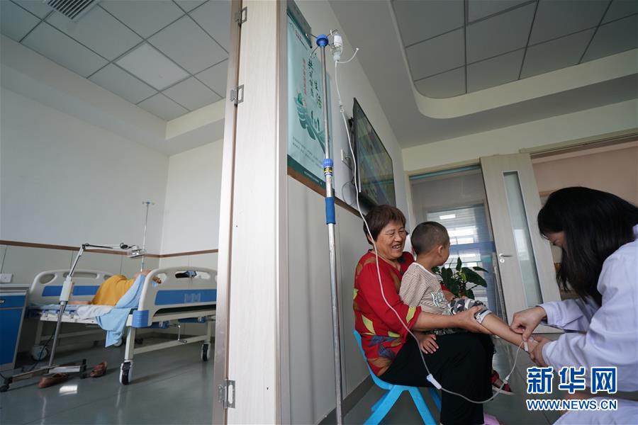 在宿迁市宿豫区新庄镇杉荷园社区卫生室,患者在接受治疗(7月16日摄)。新华社记者 季春鹏 摄