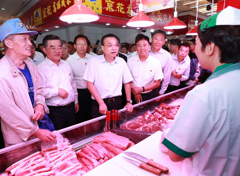 图为2019年8月20日,李克强总理考察黑龙江省哈尔滨市道里菜市场。