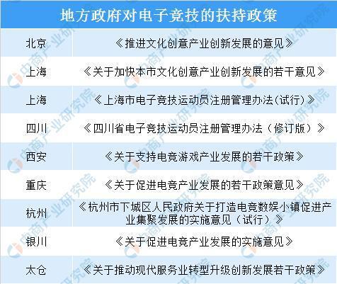 资料来源:人社部、中商产业研究院整理国家级的政策扶持是电竞产业发展壮大的基础,而随着电竞的国际影响力提升,地方政府的配套政策也正在加强。