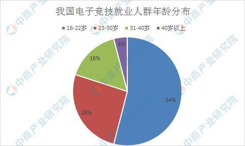 数据来源:伽马数据、中商产业研究院整理四、电子竞技员就业现状目前我国正在运营的电子竞技战队(含俱乐部)多达5000余家,电子竞技职业选手约10万人,还有大批量半职业、业余电子竞技选手活跃在各种中小规模电子竞技赛事的赛场上。同时,大量电子竞技员在各个电竞俱乐部和电竞陪练平台从事电子竞技教练、电竞数据分析以及电竞项目陪练等相关工作。当前电子竞技员的整体从业规模超过50万人,遍布在全国的一二三线等众多城市,北京、上海、江苏、西安、广州、成都、重庆等地为从业人员高密度聚集区。另外,山东、浙江、安徽、湖南、辽宁等地的电竞小镇建设也带动了周边省市的电子竞技就业发展。从年龄分布来看,有54%的电子竞技员年龄分布在16-22岁之间,有26%的电子竞技员年龄分布在23-30岁之间,只有16%的电子竞技员年龄分布在31-40之间,仅有4%的电子竞技员年龄在40岁以上。根据调研结果显示,电子竞技员就业人群年龄普遍偏低,在被调查者中有80%的从业人员年龄在30岁以下。