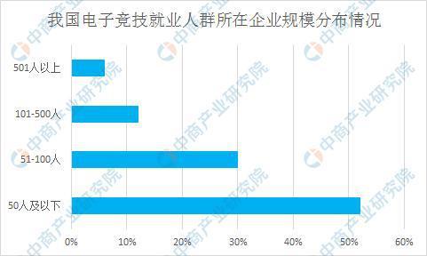 从所在企业来看,对电子竞技员就业人群所在企业规模进行调研,通过数据整理可以看出,50人及以下占比52%,51-100人占比30%,101-500人占比12%,501人及以上占比6%。电子竞技员所在企业以小、微型公司为主,这与当前就业企业以电子竞技俱乐部为主有很大的关系。
