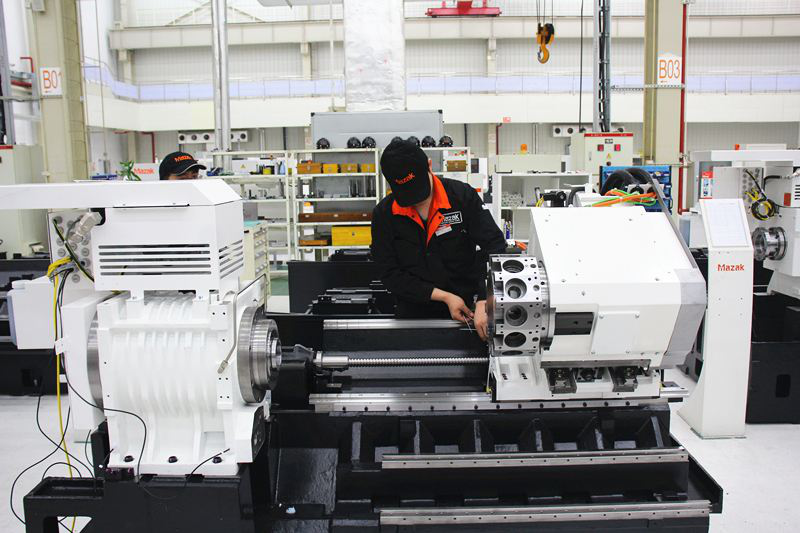 (图片来自机床商务网)有了高效率生产,还必须拥有高要求的质量控制过程。为了马扎克机床产品的可靠性,从部装到总装的全过程,马扎克会先后进行主轴单元、刀塔单元试运转实验、切削水实验和整机综合运转实验,通过至少一千九百二十分钟的实验,使问题早发现早解决。可以说,依托于马扎克先进的智能化制造理念及技术,辽宁工厂充分发挥制造过程自动化、柔性化、少人化、管理过程网络化、可视化的优势,从订单接收到产品发货实体流和信息流能够迅速、准确地完成,把制造过程、工艺过程、成本管理、物流管理置于一体,实现了智能化、无人化的生产。