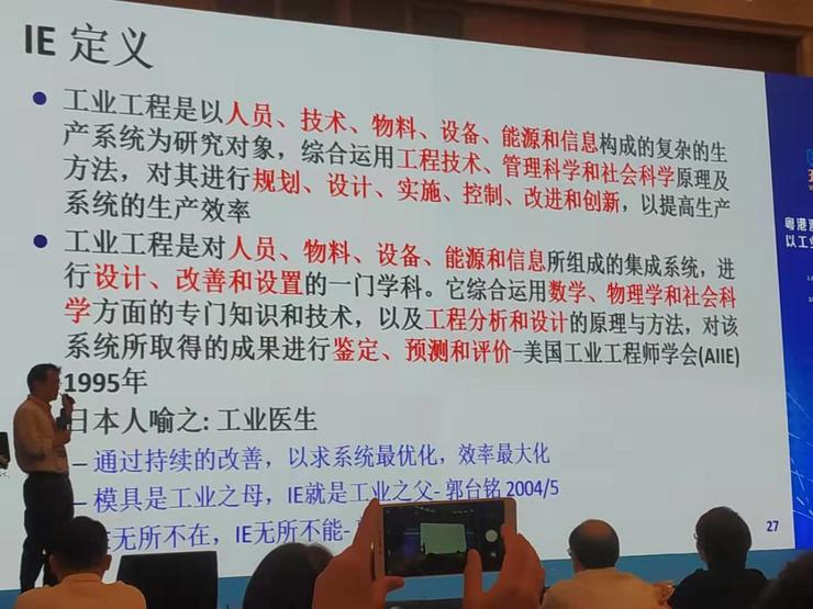 此外,工业互联网平台,在制造业的现场以及场外,以设备为核心,主要是抓取一些现场的数据,从设备的状态、oee、开机率、能耗、生产监控、设备健康指数、生命周期预测,包括和用户的打通,这些地方强调的都是数据,也就是未来是以软件定义世界,数据定义未来。雷锋网了解到,所谓的大数据不一定是海量的数据,在典型的应用中,比如我们用腾讯地图、百度地图时,可以通过对车子在高速路上行驶时速的数据,就可以判断每一条路拥塞的状况。这样的话,我们作为数据的提供者,也能享受到数据服务,类比到工业制造领域也是一样。富士康:智能制造的ie思维对各个产业或行业来讲,现在已有一些头部企业在陆陆续续地进行数字化改造,甚至是智能制造的升级。在这些企业中,富士康近年来可以说是在工业互联网与智能制造领域全面发力,把“去工厂化”提上企业转型日常。据公开信息,目前富士康拥有超过1800条smt(表面贴装技术)生产线、17.5万台cnc机床、5000多种测量监测设备,以及超过100万员工等资源。在超精密制造、模具加工等领域不仅沉淀了一定的生产技术及工艺,更是在制造精度、良率、产能等方面有自己的话语权。富士康的用工较多,从30多万人到100多万人,大概也就是最近10年的事情。如何将100万人做事或追求的目标达成一致?这就是我们要提到的富士康智能制造的ie思维。富士康科技集团资深处长、自动化与机器人专家张作为表示,ie在日本被认为是工业医生,着手于如何实现系统最优化、效益最大化。如果说模具是工业之母,ie就是工业之父。ie的角色,最主要的是在于人,富士康做得比较好的是提案改善,近十年来从30多万人到100多万人,基本上还算是乱中有序。中国人讲人多好办事,ie就是怎么样在人多的情况下把事情办好。