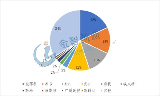 (资料来源:中国产业信息网)由于国内控制器所采用的的开发平台尚不成熟、研发历史短,造成国内机器人控制器软件与国外相比,在精度和稳定性上有所不足,因此,国产产品主要应用于对机器人精度要求不高的中低端市场。市场集中在国外企业手中,国产份额低于本体占比水平2018年,四大家族在中国控制器市场的占比与其在本体市场的占比基本保持一致,约为53%;国内部分企业控制器仍需外购,国内自主品牌本体市场市占率达32.8%,而在控制器市场仅占21.8%,国内企业控制器尚未形成市场竞争力,但在发展过程中仍然涌现出一批具有代表性的企业,比如汇川技术、埃斯顿、新时达、固高科技、新松、华中数控等企业较有优势。图2 国内工业机器人控制器市场占有率