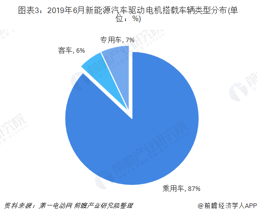 新能源乘用车占据行业电机装机量主导地位分车辆类型来看,根据工信部整车出厂合格证数据统计显示,2019年6月新能源乘用车总计配套装机115100台,占比高达87%;而新能源专用车6月装机配套9544台,占比仅为7%;新能源客车6月装机配套7334台,环比5月低迷态势增长50%,占比为6%,不及新能源专用车。可以看出,新能源乘用车在电动汽车用电机装机量中占据主导地位。