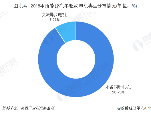 永磁同步电机为行业发展主力从驱动电机的类型来看,目前,我国新能源汽车在驱动电机方面以永磁同步电机和交流异步电机为主。根据工信部整车出厂合格证数据统计显示,2018年我国新能源汽车驱动电机量达到133.5万台,其中永磁同步电机的装机量为121.2万台,占比高达90.79%。可以看出,永磁同步电机为行业发展主力。
