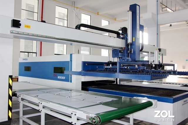 智能激光切割机床参观完模具库,笔者来到了森歌的智能激光切割机床。这台设备主要完成钢板的剪裁,它可以自动区分不同尺寸和厚度的钢板,将其分配到所需工序,并借助程序设定,最大程度实现了钢板的合理化切割利用,在提升生产效率的同时,也大幅降低了原材料的浪费。