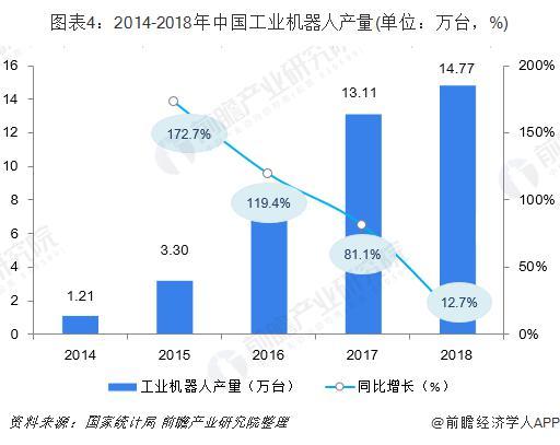 2018年,机床工具市场、食品机械市场、印刷机械市场均出现下滑。根据机经网数据,2018年,中国数控金属切削机床产量为19.06万台,同比下降14.53%;2018年,中国印刷专用设备产量为19253.68吨,同比下降25.1%。机器人、包装机械及医疗设备市场则保持较快增长,带动伺服电机需求市场增长。根据国家统计局数据,2018年,中国工业机器人产量为14.77万台,同比增长12.7%,根据中国电子学会数据,2018年中国服务机器人市场增长约为43.9%,2018年整体机器人市场增速在22%左右。