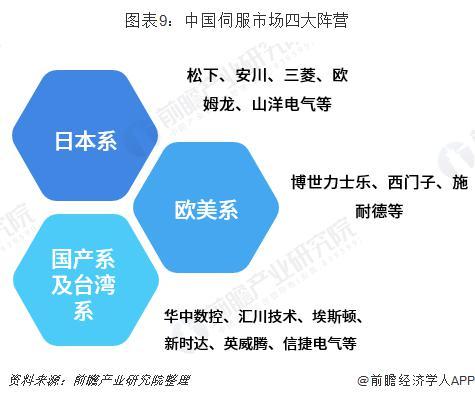 国产份额占比25%,市场份额持续提升中国伺服市场分为日系、欧美系、台湾系、国产品牌四个阵营。日系品牌凭借良好的产品性能与极具竞争力的价格垄断了中小型oem(设备制造业)市场,以松下、安川、三菱为代表;西门子、施耐德、博世等欧美品牌占据高端,下游以大型机械为主;台湾品牌产品价格和技术水平定位于外资品牌和国产品牌之间,以台达及东元为代表;国产企业以汇川技术、埃斯顿、广州数控为代表,产品功率范围多在22kw以内,技术路线上与日系产品接近,整体竞争力不断提高。
