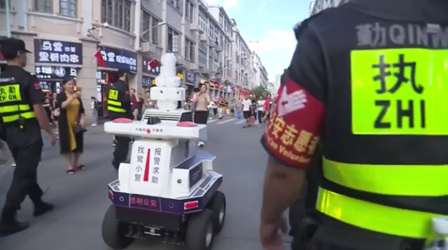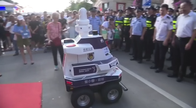 警长称这个警务机器人不但可以解放警力,还可以提高防范水平。