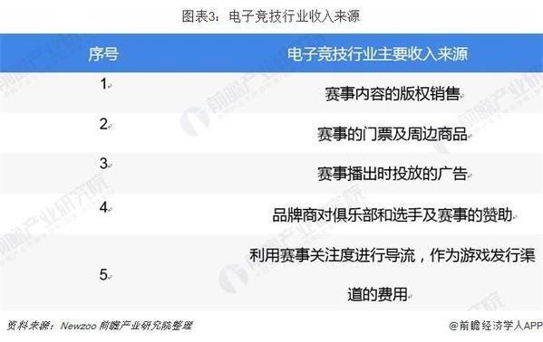 目前电子竞技行业的收入来源主要有五点,其中赛事播出时投放的广告,赛事的门票及周边商品,以及品牌商的赞助是最主要的来源。