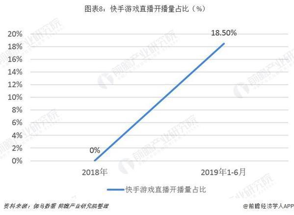 2019年,作为短视频平台的快手开始布局游戏直播,上半年,快手平台游戏直播的开播量占比达到18.5%。作为较晚入局游戏直播行业的平台,快手借助短视频业务的良好发展,已经积累了相当规模的用户群体,完成了初期平台积累。现阶段,快手已成为国内最大的游戏直播内容平台之一。