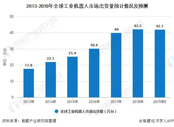 发布时间:2020-01-25 11:57:10,阅读次数:346 - 1、2018年全球工业出货量创下新纪录机器人被誉为“制造业皇冠顶端的明珠”,是衡量一个国家创新能力和产业竞争力的重要标志,已经成为全球新一轮科技和产业革命的重要切入点。根据国际机器人联合会(ifr)最新发布的《全球机器人2019——工业机器人》报告显示,2018年全球工业机器人出货量42.2万台,比上年增长6%;年销售额达到165亿美元,创下新纪录。ifr预测,2019年的工业机器人出货量将从2018年的创纪录水平回落,但预计随着持续的自动化和技术改进,未来将继续增长。