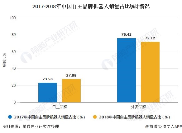 6、自主品牌率不断提升据cria与ifr统计,2018年中国自主品牌机器人销售4.36万台,同比增长16.2%;外资机器人销售11.3万台,同比下降7.2%,两者占比分别为27.88%和72.12%。与上年相比,自主品牌工业机器人销售增速虽有放缓,但依然保持了较为稳定的增长水平;外资品牌销售大幅下滑,增速骤然放缓,销量由2017年超70%的增速,回落至2018年的同比下降。自主品牌机器人在市场总销量中的比重为27.88%,比上年提高4.3个百分点。中国在工业机器人领域的研发投入力度不断加强。
