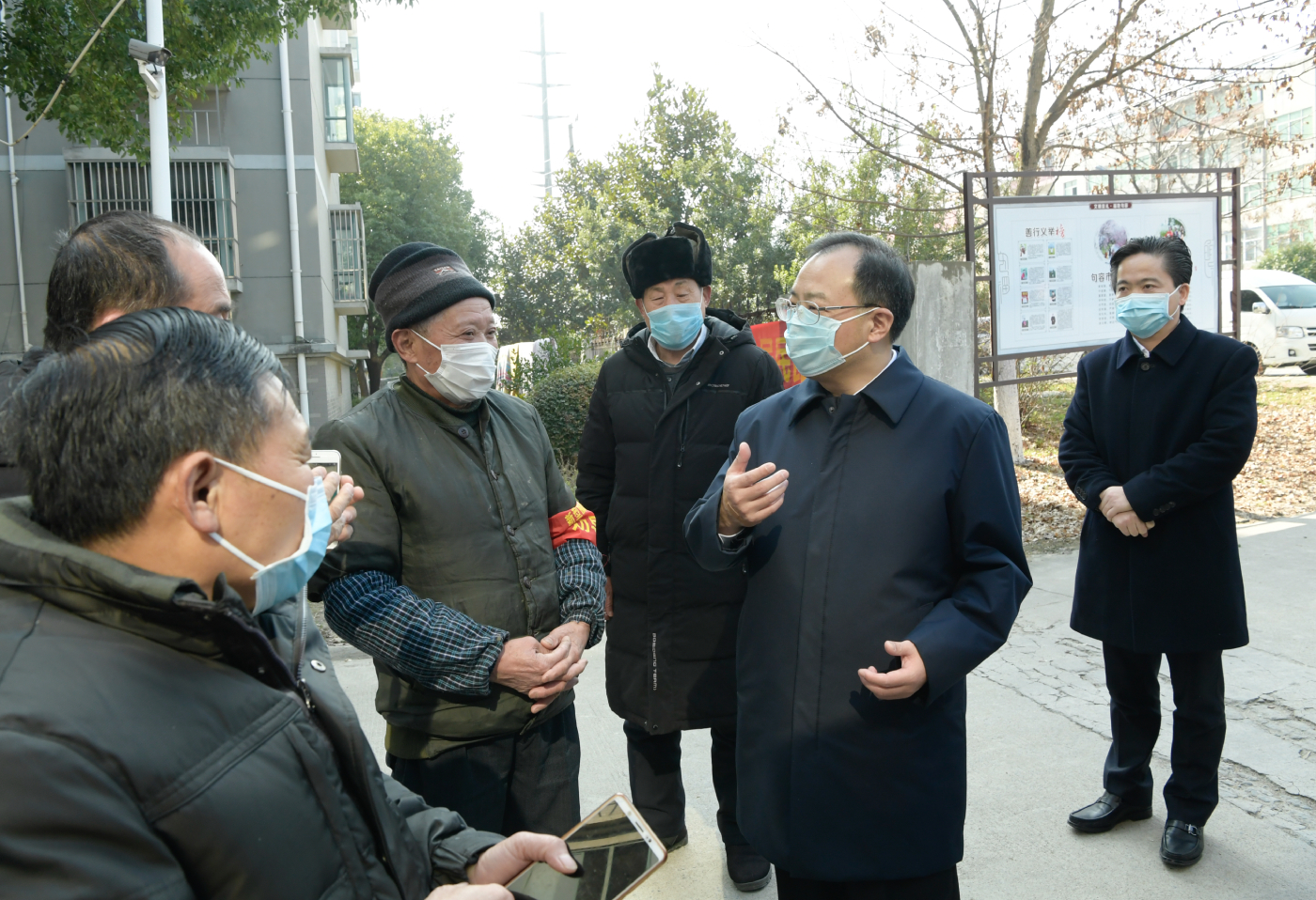 随后,吴政隆来到洪武路71号小区,实地察看社区疫情防控情况。小区的门卫室上方公布了网格长、党小组长、警长、协理员、网格员信息,张贴了疫情防控指南。吴政隆接受体温检测,并与门卫以及电话联系后赶来的网格长、网格员深入交流。外来车辆、外来人员都逐一核查吗,有多少住户、出租户有多少、疫情防控还有哪些困难?吴政隆边看边问,与大家一起想办法、解难题。他说,大家把好门、看好人,这是为自己负责、为家人负责,也是为社会负责。社区是防疫一线也是疫情防控的“最后一公里”,要发挥好基层党组织战斗堡垒作用和党员先锋模范作用,把群众动员起来、组织起来,人人当好信息员、宣传员、战斗员,网格管理到位、人员跟踪随访到位、密切接触者管理到位、环境卫生整治到位、疫情防控知识宣讲到位、社区聚集性活动取消到位,构筑群防群治的严密防线,紧紧依靠人民群众打赢这场阻击战。