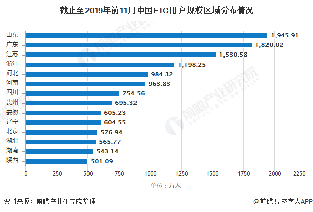 发布时间:2020-02-11 08:29:06,阅读次数:442 - etc(electronic toll collection system)称为电子不停车收费系统,是目前世界上普遍使用的道路收费方式。它是利用基于5.8ghz微波频段的专用短程通信(dsrc)技术设备来实现电子不停车收费。我国在世纪90年代开始引入etc系统,截至2019年12月31日数据,全国etc用户累计达到2.04亿,新增etc用户1.27亿。截至2019年11月,山东、广东和江苏etc用户位居全国前三甲,其中山东etc用户累计达到1945.91万。1、三大政策助推etc行业快速发展政策是推动etc行业发展的重要推手。2014年3月起,为充分发挥etc的规模效益,交通运输部决定组织全国etc联网工作,到2015年9月,全国etc系统实现联网运营。2019年国家发展ect的政策密集出台。2019年3月,李克强总理在《政府工作报告》中提出,两年内基本取消全国省界收费站,实现不停车快捷收费。2019年5月,国家发改委、交通运输部联合出台《加快推进高速公路电子不停车快捷收费应用服务实施方案》,方案提出到2019年底,全国etc用户数量要突破1.8亿,高速公路收费站etc实现全覆盖。2、etc产生巨大的社会及经济效益人工收费方式需要车辆完成减速,怠速排队、缴费,加速离开的运行过程,收费站经常伴随着大量的拥堵和尾气排放问题。相对传统的人工收费方式而言,车辆在etc方式下不需要减速停车,而能以较快速度通过并完成缴费,从而能够减少因排队、缴费造成的尾气排放。根据交通运输部数据,2019年1-11月,全国高速公路网客车交易量83.26亿笔,其中etc交易量42.95亿笔,占客车交易量比例51.6%;经初步测算,使用etc实现减少氮氧化物排放约385.94吨,碳氢化合物排放约1286.47吨,一氧化碳排放约4.83万吨。同时根据交通运输部数据,经初步测算,使用etc实现节约车辆燃油约16.24万吨,能源节约效益约15.58亿元。
