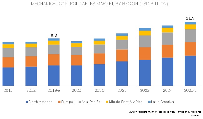 2019-25全球军用与航天机械控制电缆市场年复合增5.1%