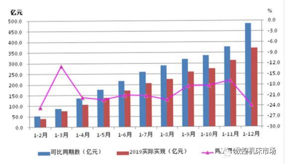 图8 2001-2019年金属加工机床消费额四、2019年行业运行主要特点1.行业运行总体下行,行业格局出现较大变化国统局和协会重点联系企业统计数据均显示,2019 年机床工具行业运行总体上呈下行趋势,收入、利润、产量、产值等主要经济指标普遍同比下降。在金属加工机床中,金属切削机床行业指标的下降幅度比金属成形机床行业更大一些。协会重点联系企业中金属加工机床订单数据也为同比下降。目前行业下行的主要原因之一是固定资产投资增速近期持续回落。汽车、3c等主要用户领域持续下行,也是造成机床工具行业2019年深度下行的直接影响因素。自2012年以来,机床工具行业已波动下行8年。从全球来看,2019年形势也发生了逆转。2018年全球机床消费达到919亿美元,增幅4.8%。而2019年主要机床生产国和地区大多走了下坡路。当前机床工具市场呈现出需求总量波动性收缩及需求结构调整和升级为主的特征,与此相伴随的是行业结构和平衡被打破。在这一变化发展的调整过程中,行业企业为适应市场的剧烈变化做了不懈的努力,有些企业聚焦主业,深耕市场需求,适应市场能力进一步提升,但也有相当多的企业陷入了越来越严重的经营困难,亏损严重,资金紧张,甚至有的不得不进行重整或处于停产半停产状态,行业格局出现重大分化。2.行业运行质量下降,亏损面有所扩大国统局和协会重点联系企业统计数据均显示,2019 年机床工具行业及各主要分行业的实现利润总额同比明显下降,行业亏损面扩大。特别是金属切削机床分行业下降更为严重。金属切削机床行业重点企业的破产重组成为2019年行业重大事件。3. 进出口出现新变化,首次实现贸易顺差2019年年初以来,机床工具全口径以及金属加工机床一直呈现出口同比明显增长,进口同比大幅下降趋势。继6月份进出口历史上首次出现顺差之后,一直保持顺差。在中美经贸摩擦的背景下,机床工具行业的出口增长成为2019年行业运行的一个突出特点。顺差是2019年以来出口增加和进口减少共同作用的结果。出口增加既反映了行业积极开拓国际市场长期努力的结果,同时也可能有产业转移等因素的影响。进口减少主要与国内需求下降等原因有较大关系。但同时应看到,各分行业情况不同,切削刀具和磨料磨具行业为顺差,金属成形机床为进出口平衡,其他产品仍为逆差。4.创新研发投入不足,内生动力亟待加强在长期市场低迷,经营困难的情况下,企业难以投入足够的资金创新研发,产品结构得不到更新,转型升级效果不理想。部分企业为适应市场需求和国家重点领域对高端机床的需求,研发了一批高端产品,但尚未批量推向市场,而且配套件主要靠进口,形成不了企业的盈利来源。在当前情况下,以生存为第一要务的相当多的国内企业无暇顾及投入资金进行高端产品研发。面对高端产品市场机制失灵问题,迫切需要探索新的体制机制进行突破,并推动行业高质量发展。五、对2020年行业形势的预判1. 宏观经济情况目前我国正处在转变发展方式、优化经济结构、转换增长动力的攻关期,结构性、体制性、周期性问题相互交织,“三期叠加”影响持续深化,经济下行压力加大。当前世界经济增长持续放缓,仍处在国际金融危机后的深度调整期,世界大变局加速演变的特征更趋明显。了解宏观经济的变化将有助于研究和把握机床工具市场和机床工具行业发展的新趋势。我国经济已从高速度发展阶段转向高质量发展阶段,2010年后国内生产总值(gdp)同比增速基本呈逐步降低走势。2019年全社会固定资产投资同比增长5.4%,其中制造业投资同比增长3.1%,远低于全社会水平。作为机床工具产品主要用户行业的汽车制造业,投资同比下降1.5%。汽车产销量同比分别降低7.5%和8.2%。2020年1月末我国广义货币(m2)增速为8.4%,狭义货币(m1)增长为0。m2增速已连续两年多低于10%,特别是近一年基本稳定在8%多一点的水平上。自2018年12月之后居民消费价格指数(cpi)和生产价格指数(ppi)出现了背离,而且二者的背离幅度越来越大。2020年1月cpi为5.4%,而ppi为0.1%。2020年1月份pmi指数为50.0%,已连续3个月处于荣枯分界线之上。从宏观经济数据来看,机床工具市场需求短期内难有大的提升。2. 2020年的有利因素(1)国家将稳增长作为2020年重要任务2019年中央经济工作会议指出,2020年是全面建成小康社会和“十三五”规划收官之年,要实现第一个百年奋斗目标,为“十四五”发展和实现第二个百年奋斗目标打好基础,做好经济工作十分重要。会议在对经济工作做出全面部署的前提下,反复强调了稳增长的重要性。要继续实施积极的财政政策和稳健的货币政策,财政政策提质增效,货币政策灵活适度。政策举措将有利于传统制造业优化升级,有利于先进制造业和战略性产业的发展。(2)国家优化营商环境,减税降费效果逐步释放2019年国家主要针对制造企业推出了历史上最大力度的减税降费政策,特别是新冠疫情爆发后,中央和地方各级政府密集出台了大量惠企政策。这些政策的效果会在2020年逐步释放,有助于机床工具企业改善经营质量。(3)多数用户行业处于增长区间根据国家统计局数据,2019年除汽车制造业外,其他主要用户行业主要经济指标仍处于增长区间,并且多数行业预计2020年仍将保持同比增长。汽车工业协会预测2020年汽车产销量仍将下行,但降幅将缩小至2%左右。3. 2020年的不