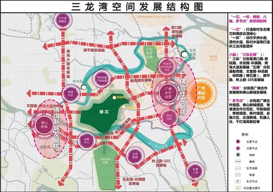 看到规划以后,佛山一下子炸锅了,经济实力比东莞还强,佛山怎么能没有一席之地?这条非常重要的走廊,后来升级为:广深港澳科创走廊,是大湾区规划中非常重要的一笔。佛山由此也感到很强的危机感。再也不能各自为战,必须从“全市一盘棋”的角度出发,一致对外,对接广深科创走廊,才能不被边缘化。因此,佛山提出了一个新的想法,设立禅南顺高端创新集聚区。这个高端创新集聚区,刚好位于广深科创走廊的延长线上,又是禅城、南海、顺德三个佛山实力最强的区,可以共同发力的集合点。三龙聚首。这是一个新创造出来的地名。2018年5月2日,佛山市委书记鲁毅主持召开的市委书记专题会议上,这个集聚区被正式命名为“佛山三龙湾高端创新集聚区”。