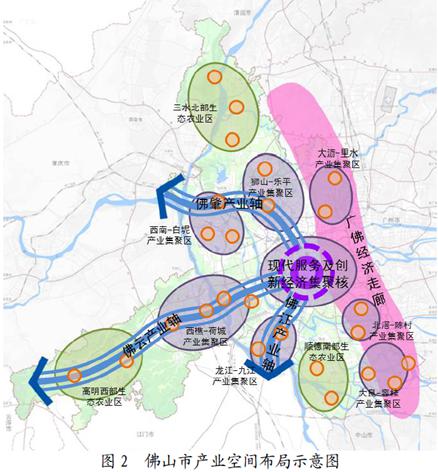 哪些新城,才真正具有含金量?从根本上来讲,要看城市发展的大趋势,以及产业和人口分布。不要被眼花缭乱的名称,扰乱了思路。先看关键的产业布局。佛山的产业,可以概括为“一核、一廊、三轴”。
