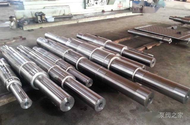 2、 水泵泵轴一般为碳钢件,但由于制造质量、使用或安装等原因也易损坏。泵轴可能出现 裂纹、弯曲、轴颈磨损、螺纹损坏等,也可能出现断裂事故。如损坏严重不能修理时,应更换新轴。