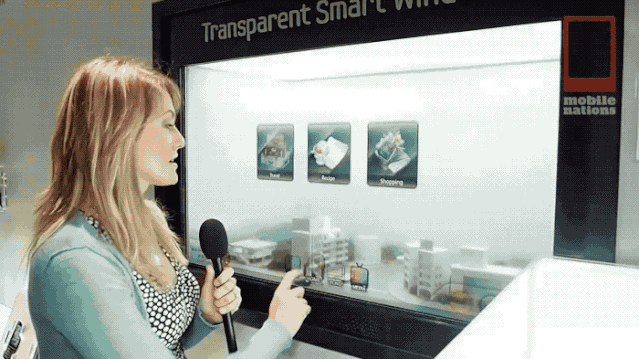 图片来自:Mobile Nations到了 2012 年,三星还展示了一种支持触摸的「智能窗户」原型,你可以想象一下,自己在一块透明玻璃上滑动、点按界面的感觉,这也算是无限接近于科幻电影里的场景了。