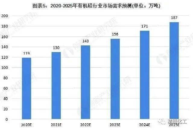 人均有机硅消费量仍有较大提升空间根据德国瓦克年度报告,人均有机硅消费量与人均GDP水平基本呈正比关系,而且低收入国家有机硅需求增长对收入增长的弹性更大。目前我国有机硅的人均消费量约为0.7kg,而欧、美、日等发达国家和地区已接近2.0kg,我国有机硅人均消费量仍然有很大提升空间。未来,受益于有机硅应用范围的不断拓展以及巨大的需求潜力,中国聚硅氧烷消费量将继续保持中高速增长。SAGSI预计中国聚硅氧烷消费量将继续保持中高速增长,到2023年中国聚硅氧烷消费量将达到156万吨。在此基础上进一步预测,到2025年中国聚硅氧烷消费量将达到187万吨左右。