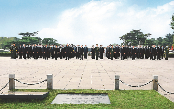 天地英雄气,千秋尚凛然。今年9月30日是第九个烈士纪念日。当天上午,江苏省暨南京市各界向雨花台烈士敬献花篮仪式举行。省委书记、省人大常委会主任吴政隆,东部战区司令员林向阳、政治委员何平,省委副书记、省长许昆林,省政协主席张义珍,省委副书记、省委政法委书记邓修明等与省和南京市各界代表一起,向人民英雄敬献花篮,缅怀英烈、致敬英雄,共同表达传承红色基因、弘扬伟大建党精神,不忘初心、牢记使命,在新起点上把革命先辈开创的伟大事业不断推向前进的坚强决心,为“扛起新使命、谱写新篇章”,为实现中华民族伟大复兴中国梦凝聚强大的精神力量。