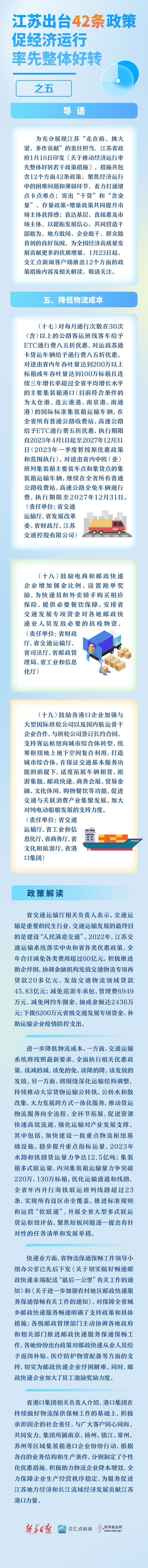- “江苏出台42条政策 促经济运行率先整体好转”之四2023/01/27