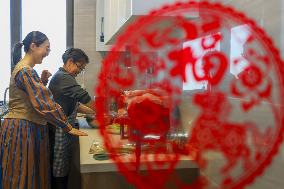 大年初二,河北雄安新区年味正浓。记者来到牛佩瑶的家中,春联、“福”字映衬满屋喜气,五颜六色的小彩灯挂在窗台。一家人正一起准备午饭。